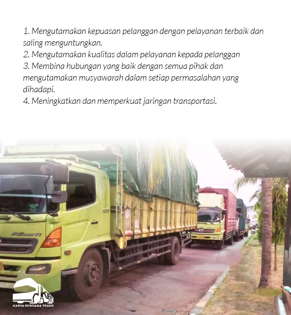 PT. Karya Bersama Trans telah menjadi perusahaan transportasi yang bertumbuh dengan cepat dan memiliki kinerja yang baik. Selama ini, PT. Karya Bersama Trans telah mengelola sejumlah armada untuk melayani pelanggan yang sebagian besar bergerak dibidang makanan ringan